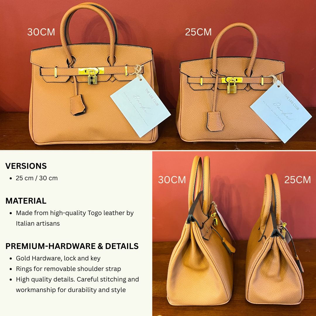 The Cannes beautifully combines style and functionality. Made from high-quality Togo leather by Italian craftsmen, it is durable, elegant and available in two sizes (25 cm and 30 cm), ideal for any occasion.